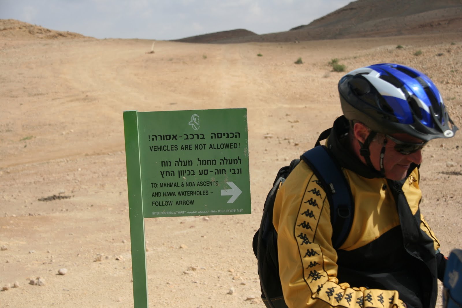 ממשיכים ברכיבה די שקטה, עד צומת שבילים עם רמז שחור על גבי ירוק: "למעלה מחמל... סע בכיוון החץ". נסענו בכיוון החץ.